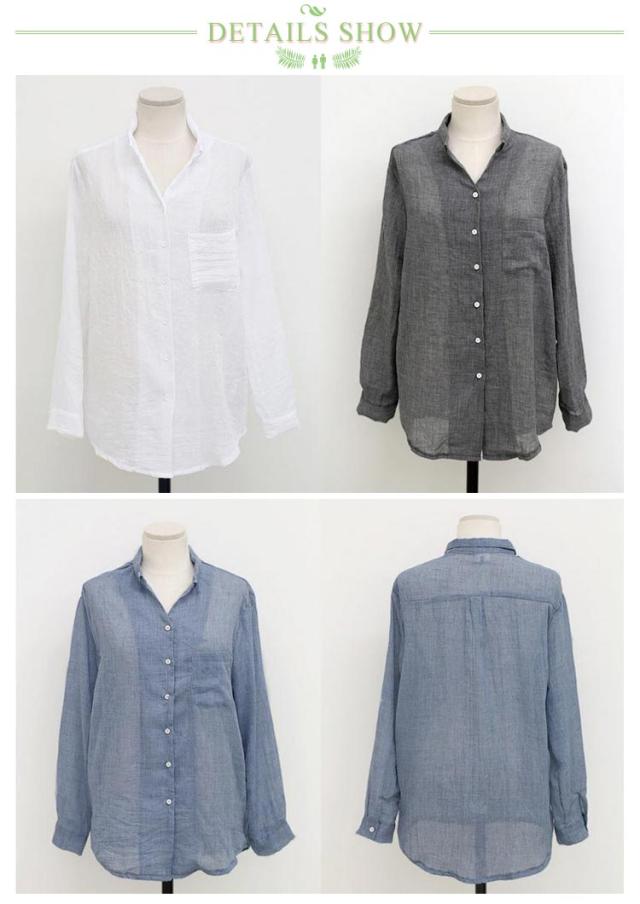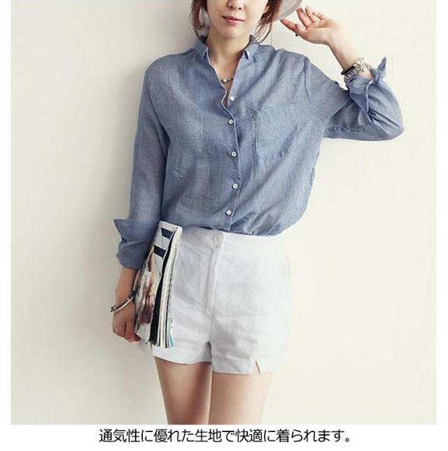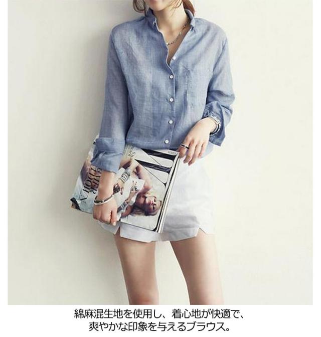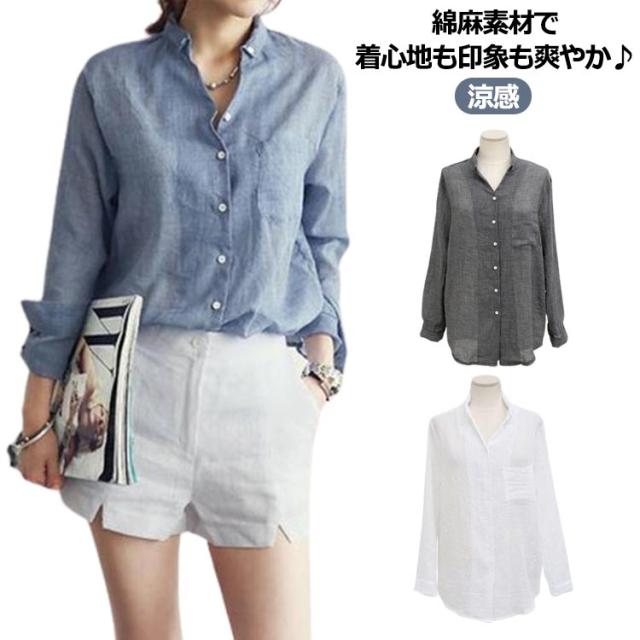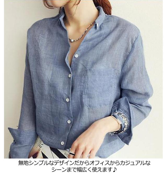 ブラウス トップス 綿麻 無地 薄手 コットン リネンシャツ 長袖 レディース オフィス サマーシャツ 涼しい 涼感 羽織り 春夏秋 柔らか カジュアル ブラウス 20代 30代 40代