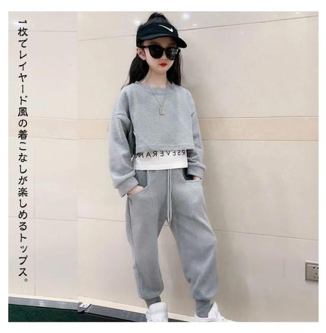 子供ジャージ 女の子 2点セット 男の子 スウェットパンツ キッズ 子供ジャージ 長袖 トレーナー セットアップ 子供服 春服 上下セット トップス レイヤード風 長ズボン 秋服 ダンス衣装 HIPPOP スポーツウェア 韓国子供服 ルームウェア おしゃれ 可愛い