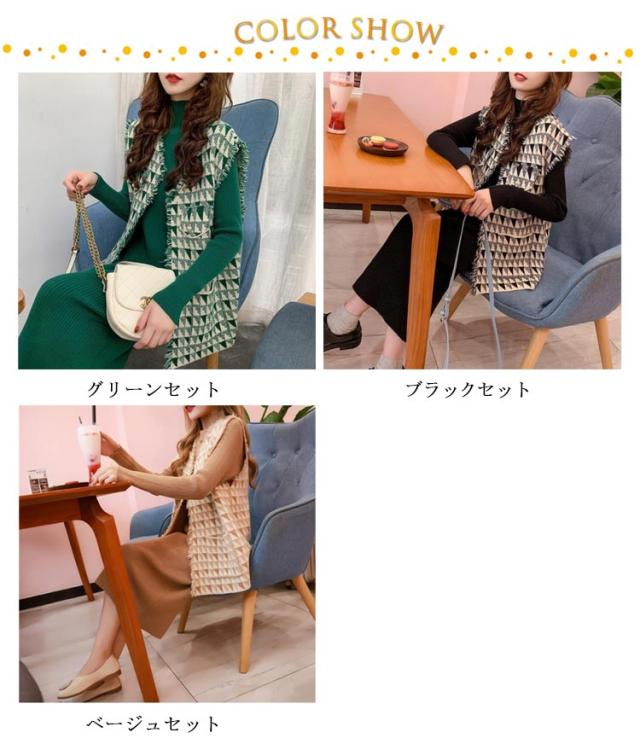 セットアップ ツイード風ベスト ニットセットアップ 50代 タートルネック セーター ニットベスト ベスト フレアワンピース 長袖 40代 レイヤード ニットワンピース セット 上品 きれいめ 通勤 ミセス ロングワンピ ツイード風ベスト 30代 春 秋