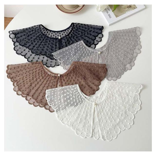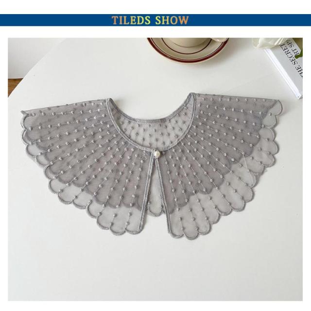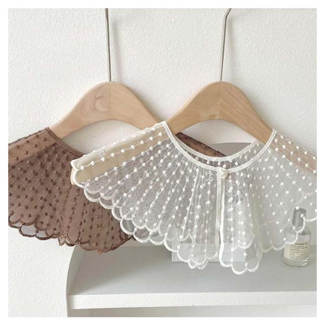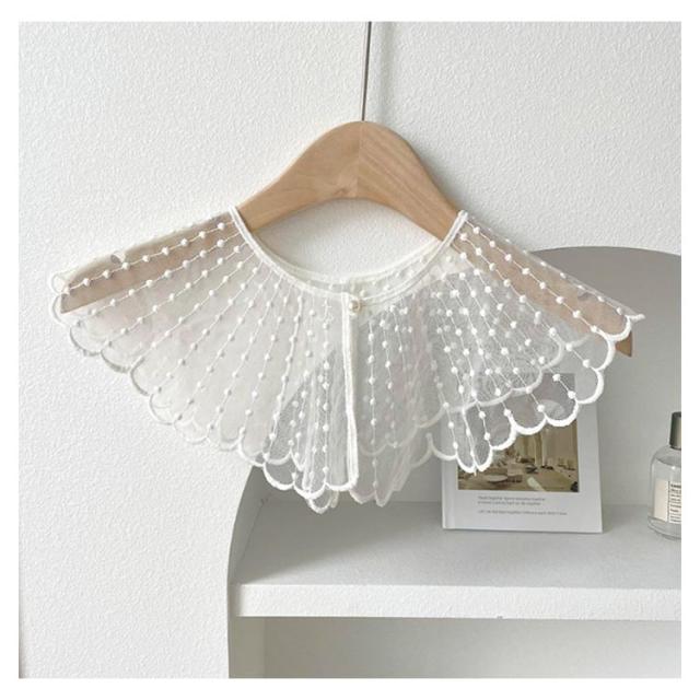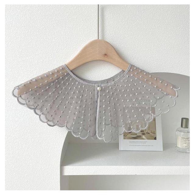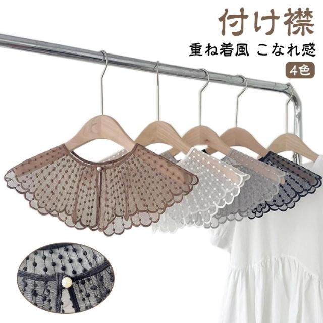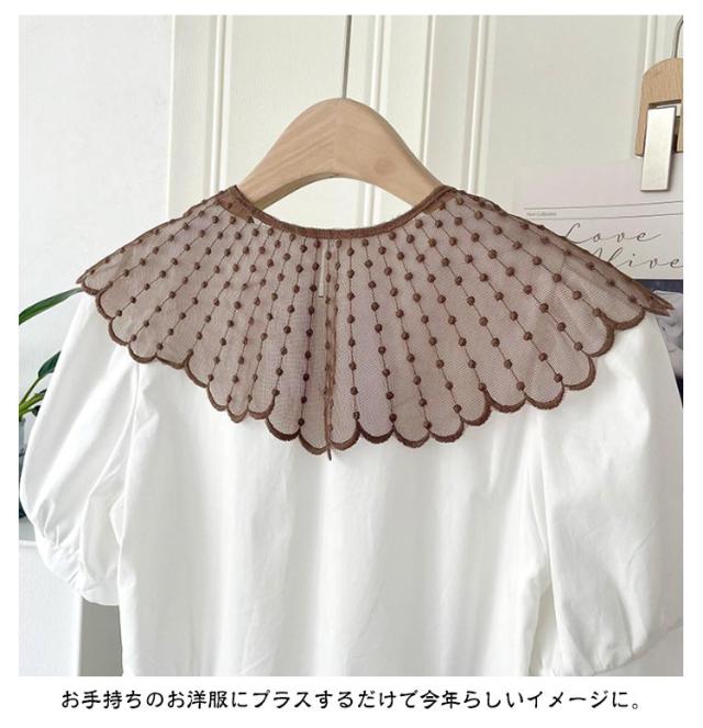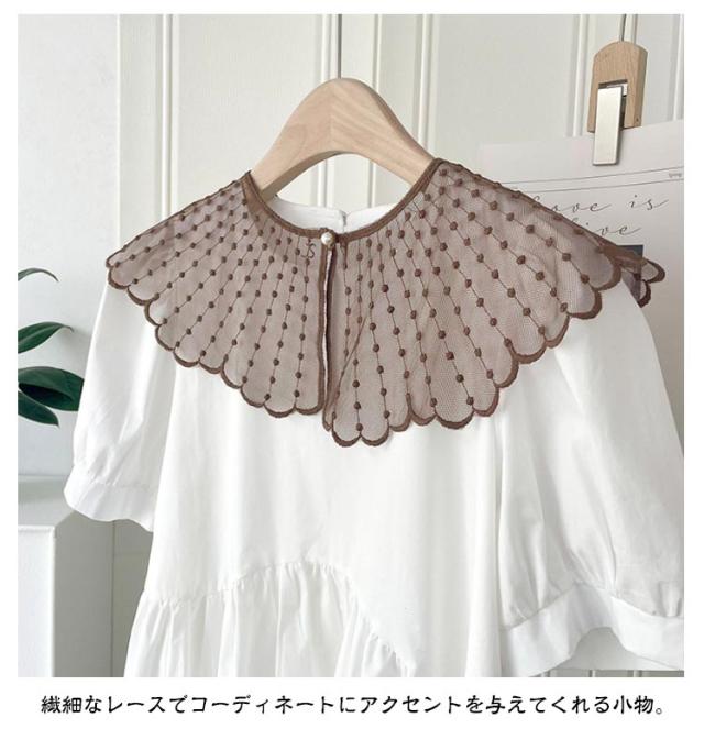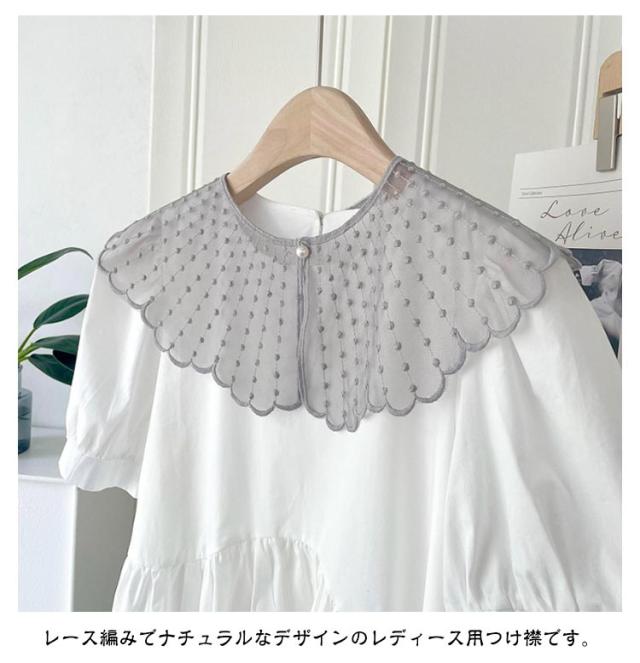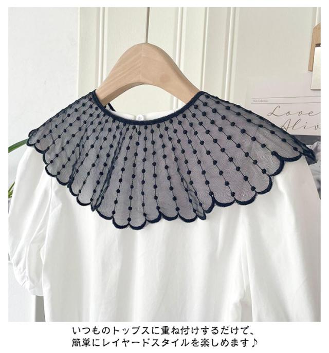 ブラウス レイヤード レース シャツ 付け襟 付け衿 重ね着 ファッション小物 つけ襟 キッズ 付け襟 女性 丸襟 ビッグカラー 透け感 ナチュラル 重ね付け アクセント パール かわいい つけえり 重ね着風
