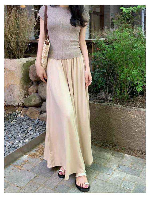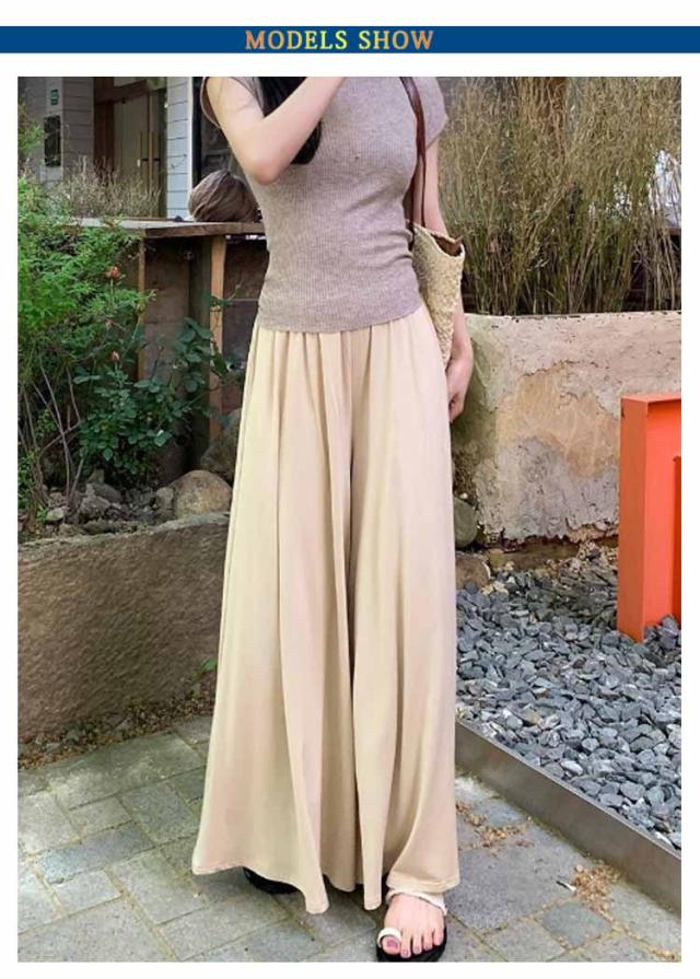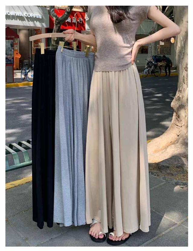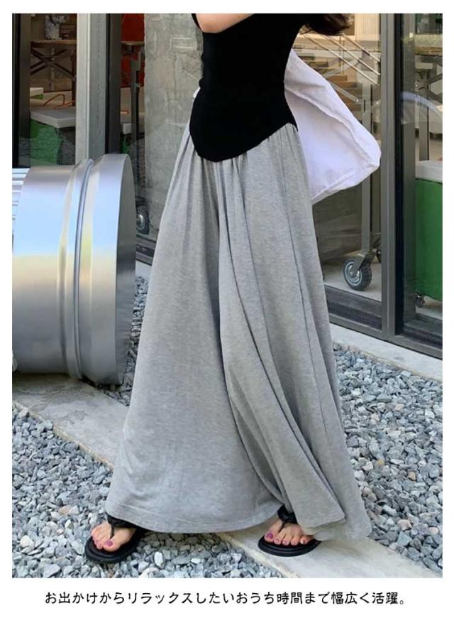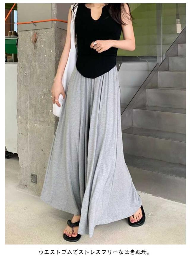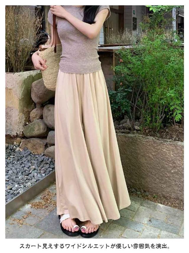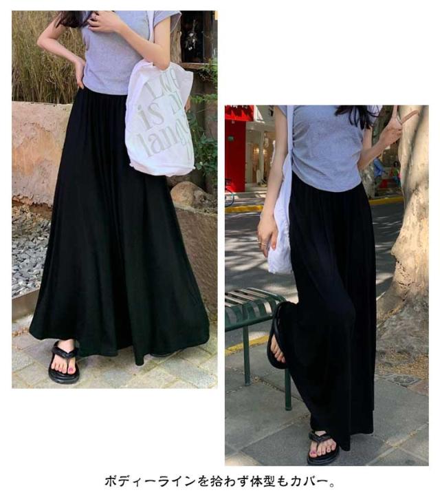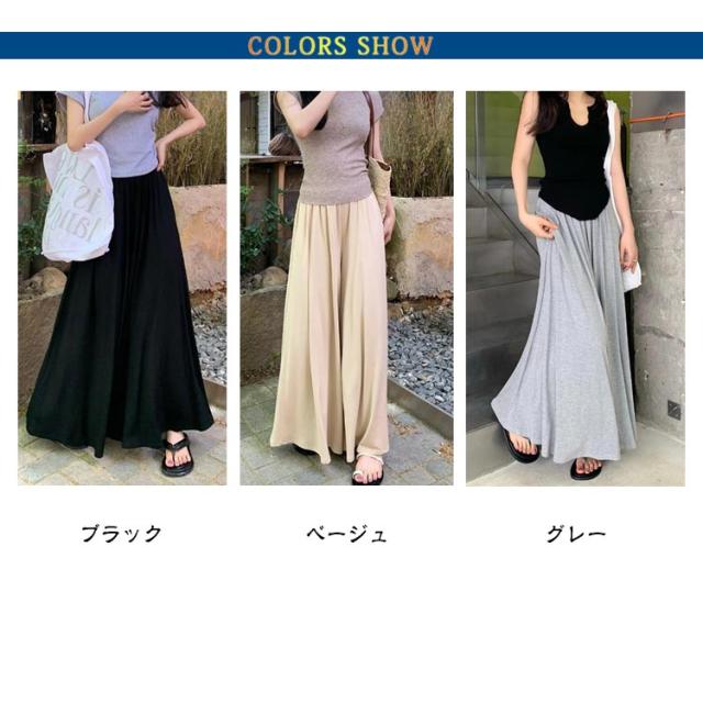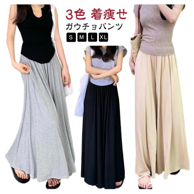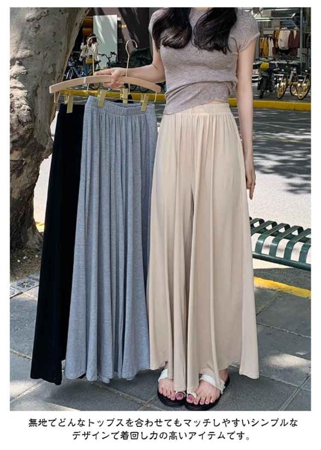 ウエストゴム カジュアル ワイドパンツ ガウチョパンツ 夏 ゆったり スカートみたい 秋 ガウチョパンツ ボトムス ロングパンツ ガウチョ 軽い お洒落 シンプル 黒 無地 ワイド 春 スカート風 パンツ 体型カバー 着痩せ