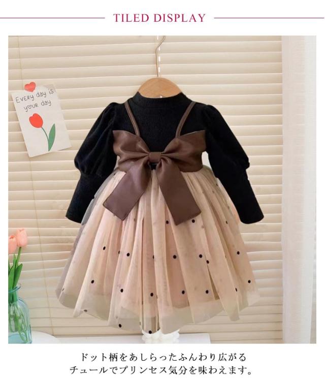 卒園式 女の子 ワンピース チュールドレス ベビー バックリボン 90 ドット柄 ベビー 110 ボリューム袖 入学式 赤ちゃん 可愛い お宮参り 長袖 子供服 結婚式 卒業式 100 子供ドレス セレモニードレス 七五三 発表会 プリンセス ドレス 女児 ベビー服