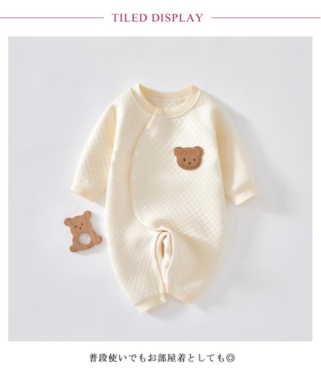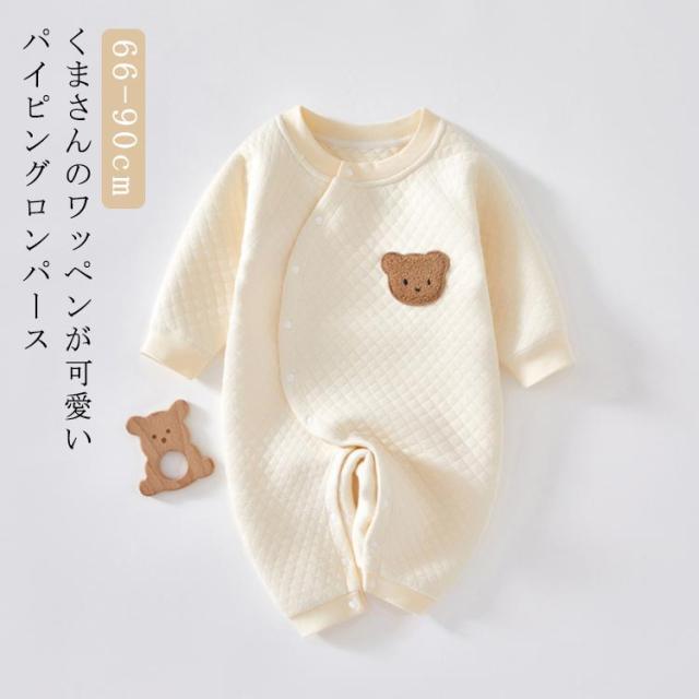 冬 ベビー服 おしゃれ 男の子 ベビー 女の子 あったか ベビーロンパース ロンパース 韓国 春 コットン 赤ちゃん 前開き 綿 秋 パイピング くま 可愛い カバーオール 出産祝い あったか 長袖 66cm 73cm 80cm 90cm 子供服