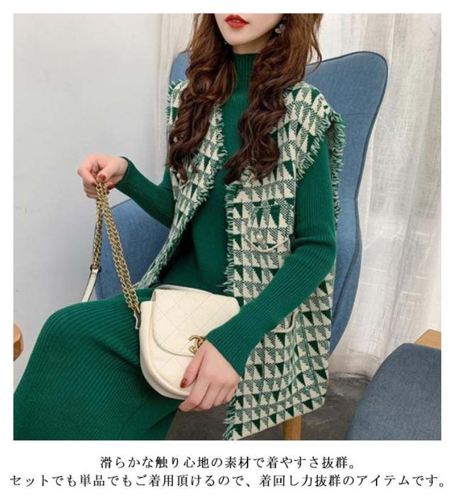 セーター ロングワンピ ツイード風ベスト ベスト ニットベスト タートルネック 長袖 セットアップ ニットセットアップ ツイード風ベスト フレアワンピース レイヤード 40代 セット 上品 きれいめ 通勤 ミセス 50代 ワンピース 30代 春 秋