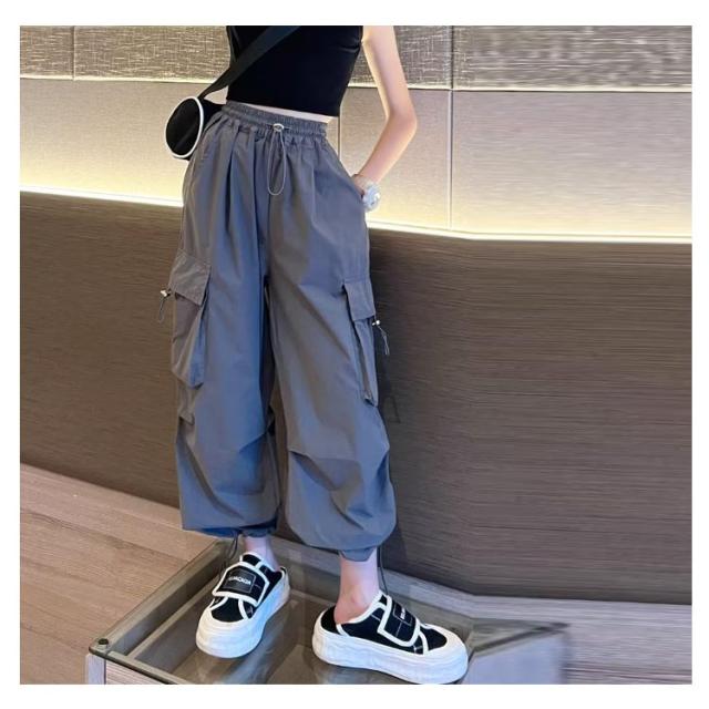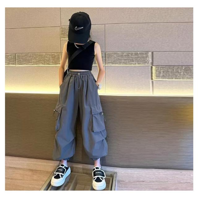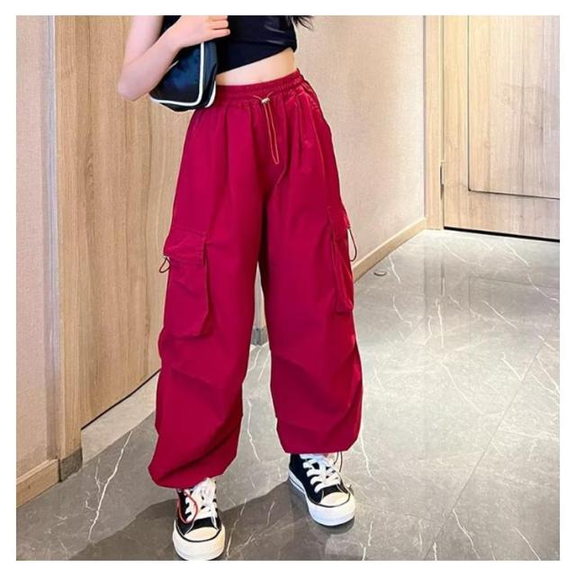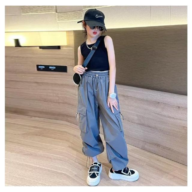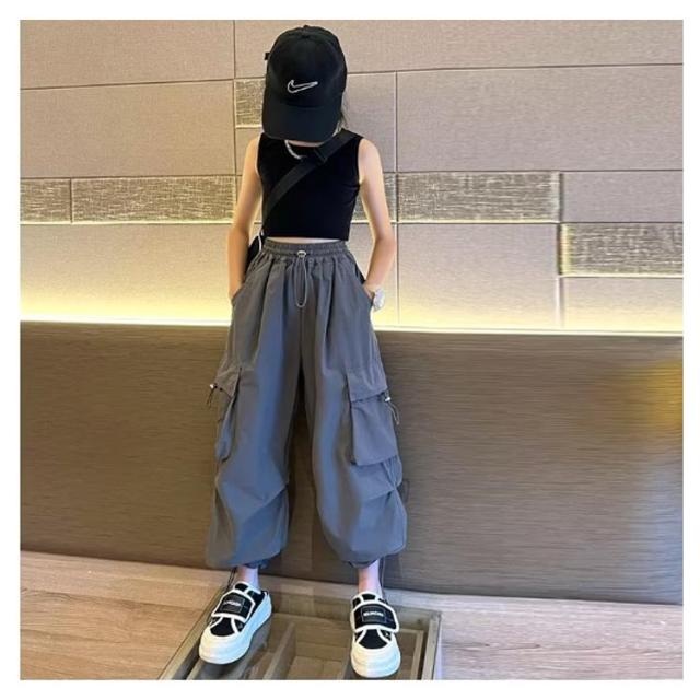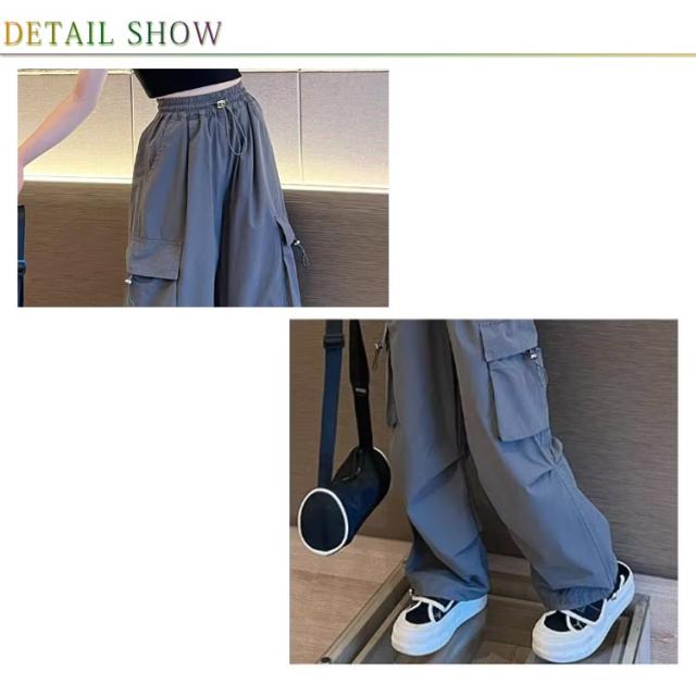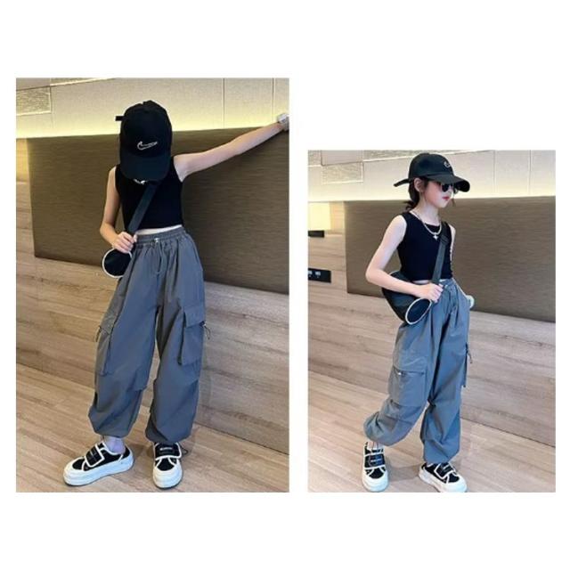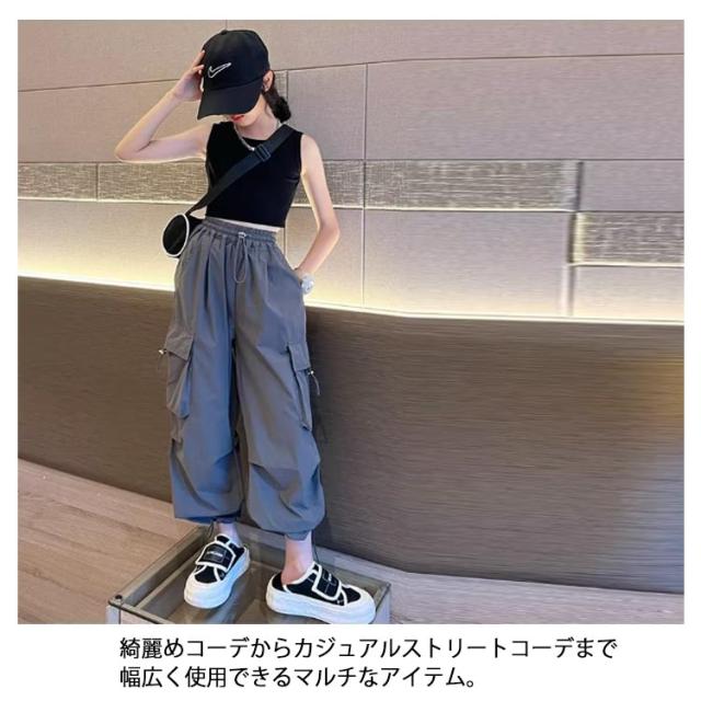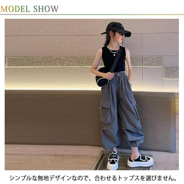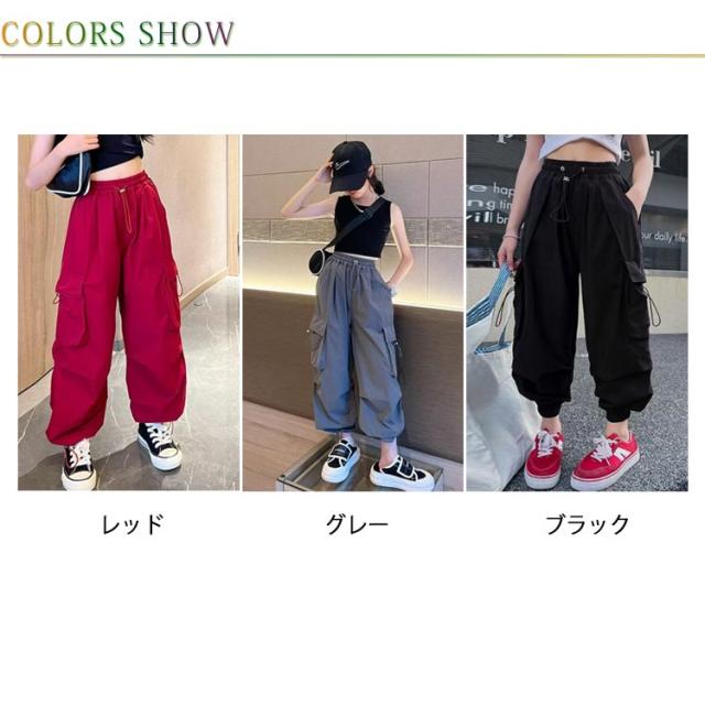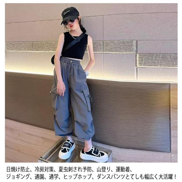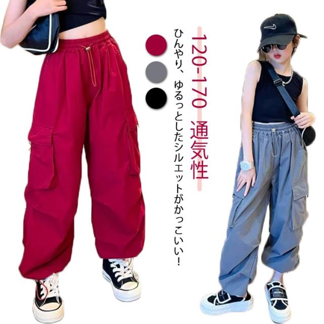 カーゴパンツ パンツ 女の子 ウエストゴム キッズ 長ズボン ストリート ワイドパンツ 子供服 ガールズ カーゴパンツ 子ども カジュアル 通気性 ロングパンツ 涼しい ひんやり 裾ゴム ダンス 衣装 薄手 ヒップホップ k-pop 小学生 中学生