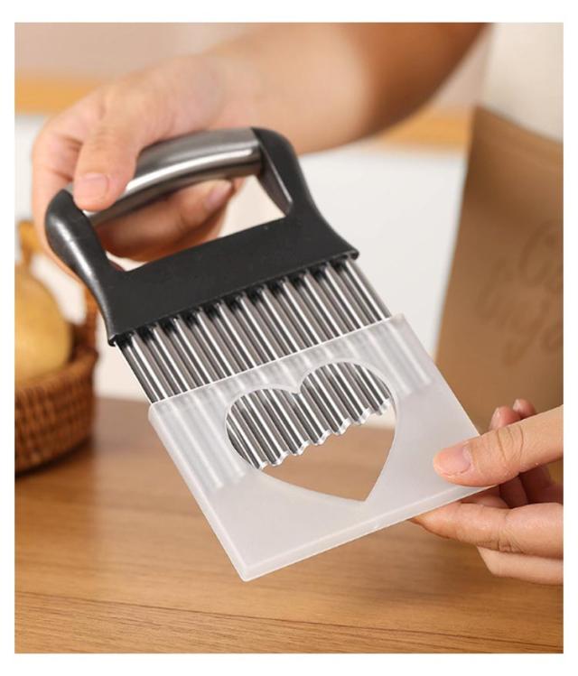 波型カッター ハート型カバー付き インド 包丁 飾り切り ポテトカッター ナイフ 波型 フランス風 ベトナム料理 野菜 ポテトスライサー フライドポテト 調理器具 ナチュラル 北欧 食器 アジアン食品