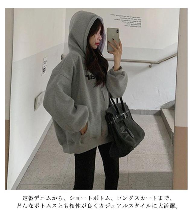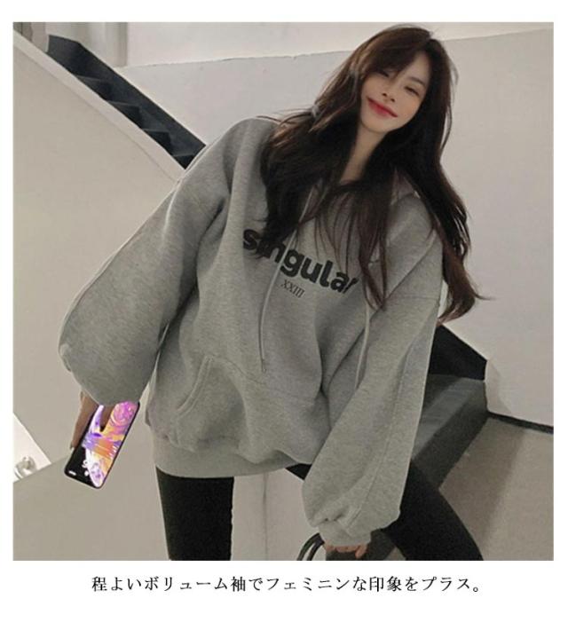 プルオーバー パーカー カレッジロゴ レディース パーカー 大きめ オーバーサイズ ビッグパーカー ビッグシルエット 大きいサイズ スウェット スエット トレーナー ワンポイント トップス フーディー ビッグ ドルマン ドルマンスリーブ