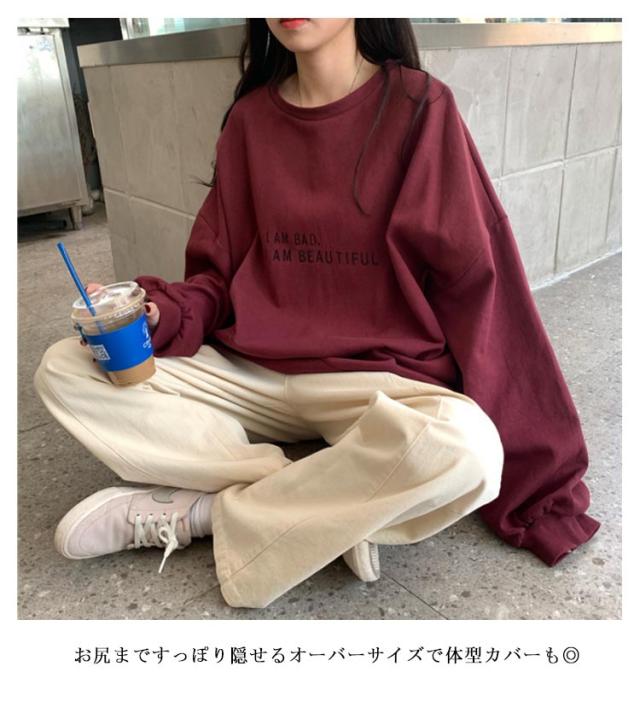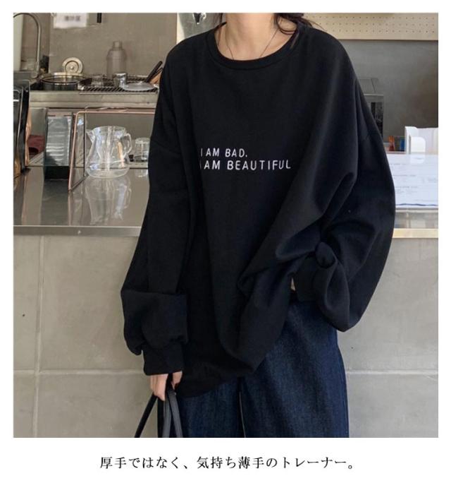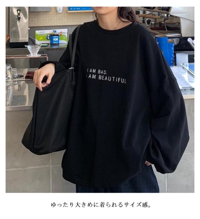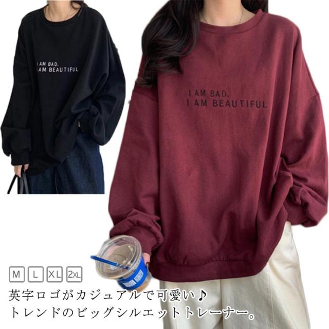 ビッグトレーナー レディース 長袖 リブ ビッグサイズ オーバーサイズ 大きいサイズ 英字 ロゴ入り 長袖 トレーナー スウェット スエット プルオーバー 肩落ち 無地 ビックシルエット ストリート系 韓国ファッション 大きいサイズ