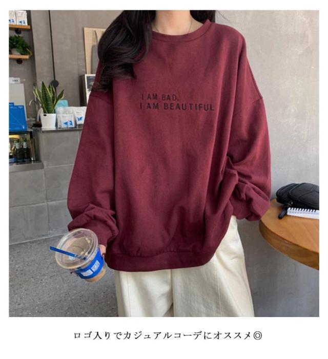 | 英字ロゴがカジュアルで可愛い♪トレンドのビッグシルエットトレーナー。 ゆったり大きめに着られるサイズ感。 厚手ではなく、気持ち薄手のトレーナー。 お尻まですっぽり隠せるオーバーサイズで体型カバーも◎ ロゴ入りでカジュアルコーデにオススメ◎ | |