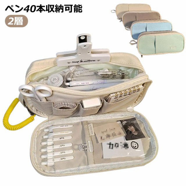 ペンケース 筆箱 ポーチ 文房具 2層 コスメ 小物 収納 帆布 ふで箱 ふでばこ ファスナー ペンポーチ ギフト 大容量 収納袋 化粧ボックス 化粧品バック 可愛い おしゃれ ファーケース 韓国 袋 文房具 卒業 入学 誕生日 ギフト 小物入れ 無地