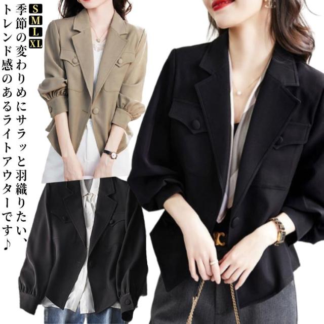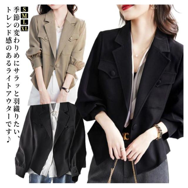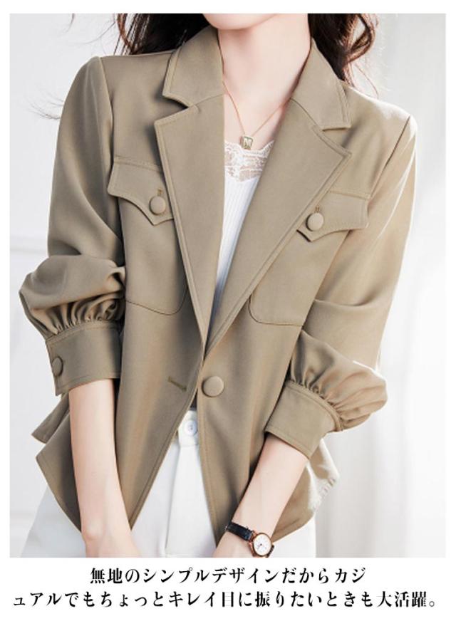 トレンチコート ジャケット レディース ショート丈 アウター ショートコート オフィス テーラードジャケット 長袖 無地 春 秋 大人カジュアル おしゃれ 体型カバー 通勤 通学 普段着 デート お洒落 カジュアル 日常 ママコーデ
