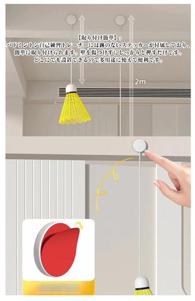 | 【便利な家庭用】:このバドミントントレーニング器具を使用すると、ボールを拾う必要がなく、自宅でバドミントンをプレイできます。自宅で楽しく楽しくトレーニングするのに最適です。 【耐久性のある素材】: ナイロン製のこのバドミントントレーナーは、プレイに耐えるように設計されています。傷つきにくくパワーも強いのでパワーや技術の向上に最適です。 【取り付け簡単】: バドミントン自己練習トレーナーには跡のないステッカーが付属しており、簡単に取り付けられます。壁を傷つけずにしっかりと押すだけです。どこにでも設置できるので多用途に使えて便利です。 | |