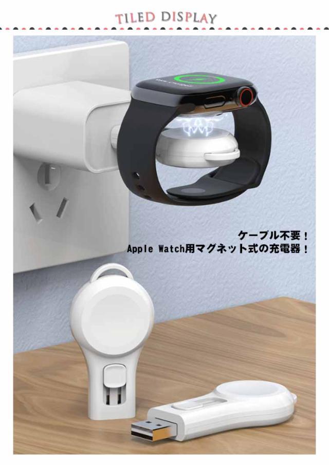 Apple Watch 充電器 ワイヤレス Watch Series 9 8 7 6 5 4 3 2 1 SE2 SE1 アップルウォッチ ワイヤレス充電 USB式 Type-C端子 マグネット式 充電スタンド 薄型 携帯 持ち運び便利 送料無料