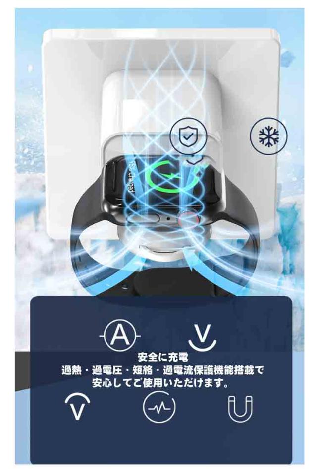 | ケーブル不要!Apple Watch用マグネット式の充電器! ●マグネット式充電 マグネットが内蔵され、AppleWatchと引き合い振動などでズレることなく、安定して充電することができます。 ●USB-AとType-Cの2タイプ端子 2つの充電ポートであらゆるシーンに対応できます。 ●安心の低温充電 接続されたデバイスを自動的に検知し、最適な電流を流します。充電の際に発生する発熱を抑え低温のまま充電可能。 ●落下防止 磁気充電タイプでピッタリとつき、充電中の落下を防止できます。 ●軽量・コンパクト 手のひらに収まるコンパクトサイズ!ポケットやカバンに入れても邪魔にならない。 ●幅広い使用可能 ご自宅・外出先・オフィスなどのシーンでご使用いただけます。旅行や出張にも最適です。 ●安全に充電 過熱・過電圧・短絡・過電流保護機能搭載で安心してご使用いただけます。 | |