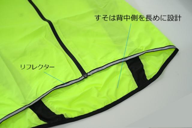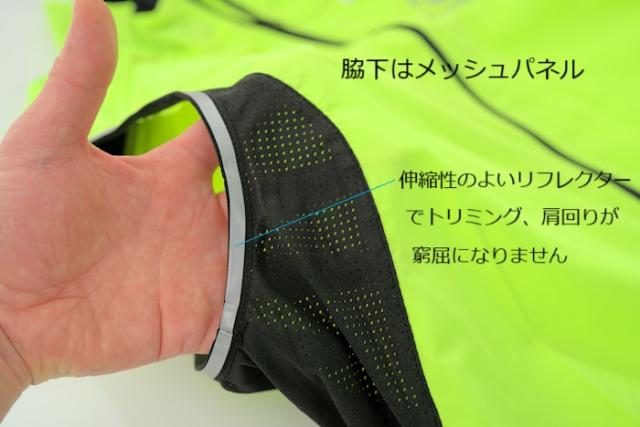 ・肩、すそ、メッシュ部分は伸縮性のあるリフレクター素材でトリミング。