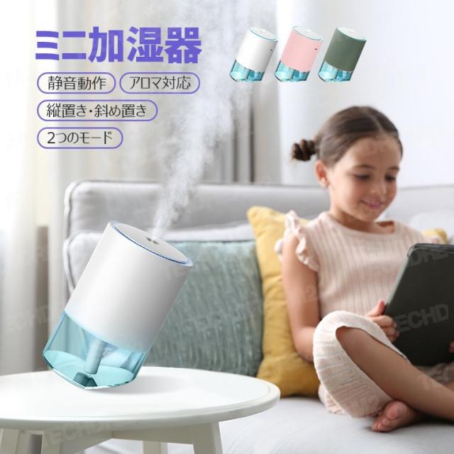 小型 加湿器 充電式 高分子霧化 加湿器 アロマ対応 おしゃれ 静音動作 省エネ 350ML LEDライト 2つのモード 縦置き・斜め置き 卓上 オフィス