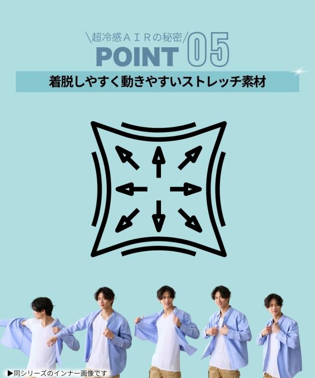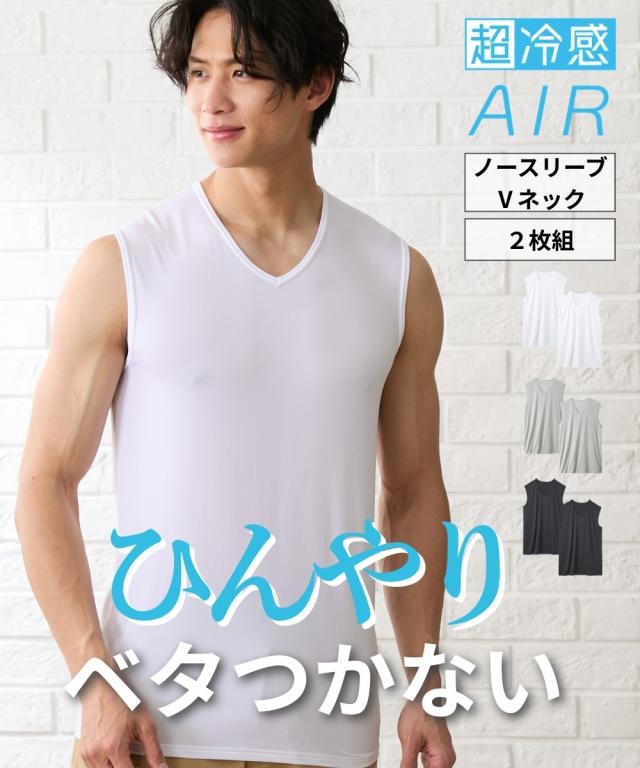 〜涼しく進化した超冷感AIR〜 『ひんやり冷感』を追及すると通気性が悪くなりがちな夏インナー。 ひやっとして通気性もいい そんなダブルで嬉しい新インナーを考え、誕生したのが超冷感AIRです。 洗い替えに便利な同色2枚組でお届けします。 深めのVネックでシャツのインとしても重宝します! 〜超冷感AIRの嬉しいポイント〜 ・接触冷感 ひんやり気持ちいい素材です。 ・吸汗速乾 汗をかいても素早く吸収しサッと乾くから、ベタ付きにくく快適な着心地です。 ・メッシュ素材 肌との接地面が少ないからサラッと快適、かつ薄手で軽く涼しい素材で暑いシーズンにピッタリです。 ・紫外線遮蔽率は95%以上。肌にやさしい、着用するだけの日焼け対策になります。