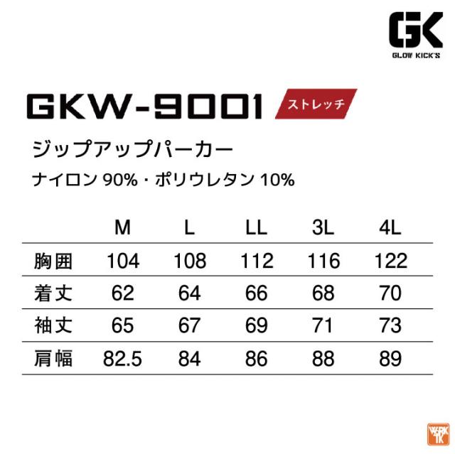 ケイゾック ストレッチ パーカー ブルゾン ジャケット ジャージ 長袖 作業服 作業着 建築 現場 スポーツ アウトドア キャンプ 登山 ウインドブレーカー 春夏 秋冬 メンズ レディース カジュアル おしゃれ かっこいい 大きいサイズ GLOW KICKIS グローキックス kc-gkw9001