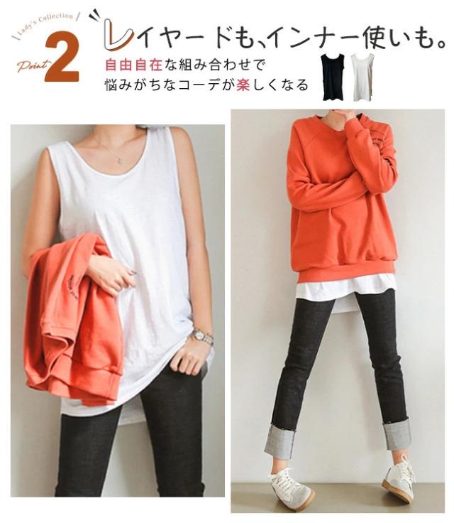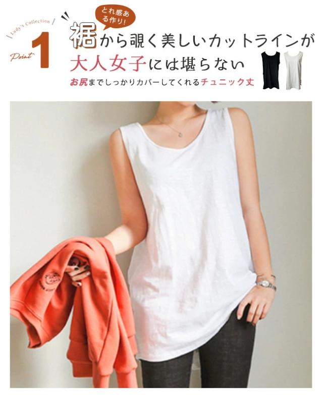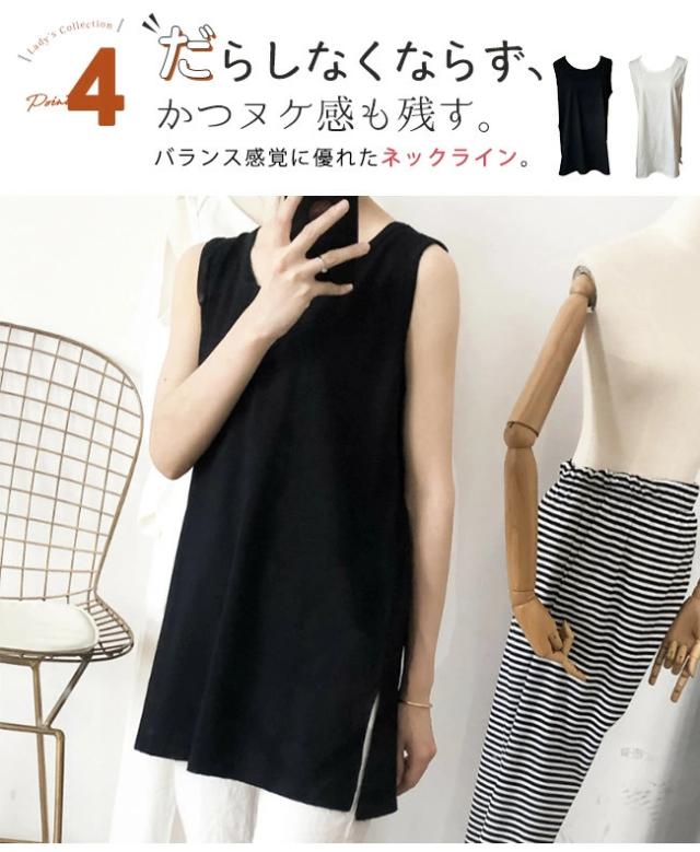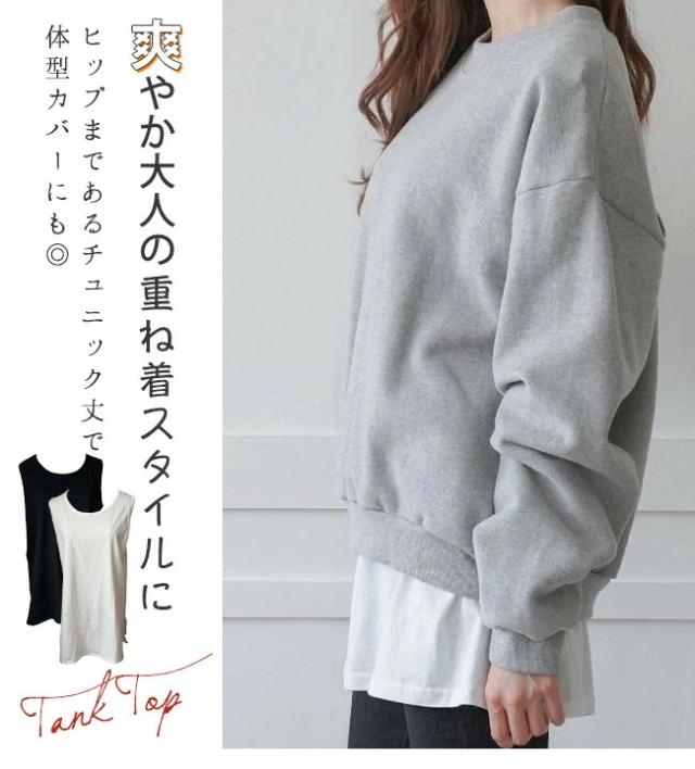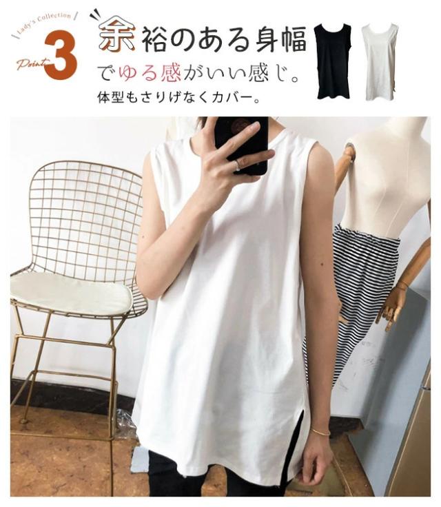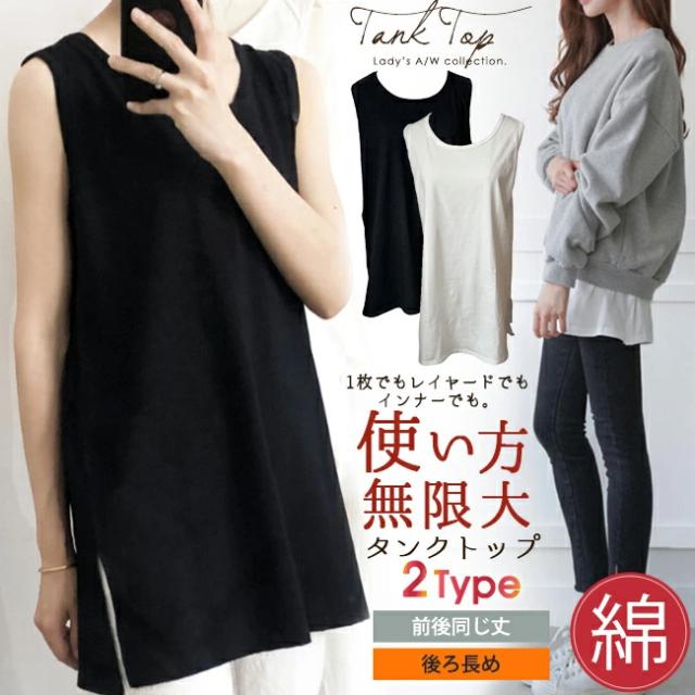 【即納】タンクトップ ロング ロングタンクトップ カバー チュニック丈 ゆったり サイドスリット レディース 重ね着 インナー 綿 無地 ノースリーブ 肌着 アンダーウェア シャツ ルームウェア
