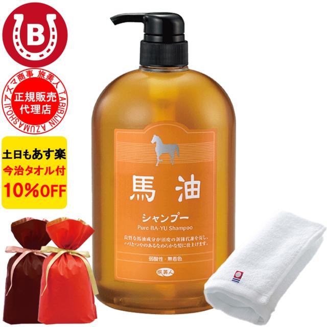 ラッピング付 馬油シャンプー ボトル アズマ商事 馬油 シャンプー 1000ml 大容量 旅美人 10%OFF 今治タオル付 送料無料