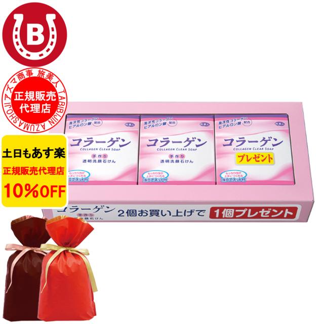 ラッピング付き 石鹸 コラーゲン アズマ商事 コラーゲン透明洗顔石 3個入 泡立てネット付き 石けん 乾燥肌 敏感肌 旅美人 10%OFF