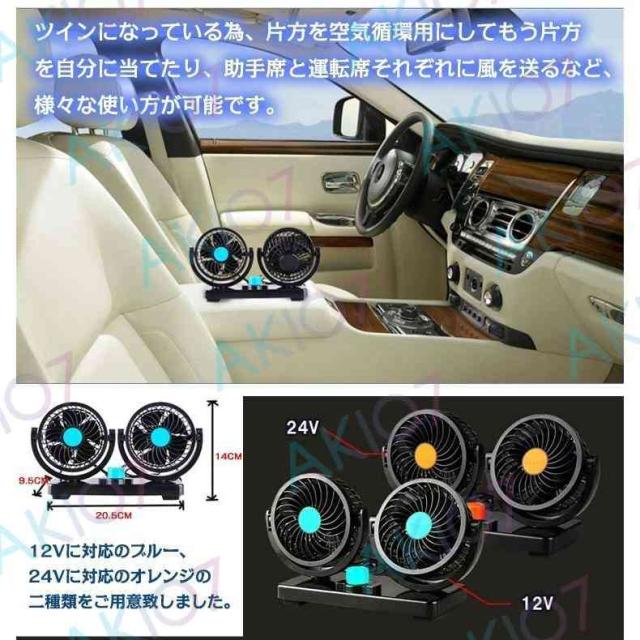 12/24V対応 車用扇風機 サーキュレーター 車 扇風機 ツインファン 熱中症対策 車載 カー用品