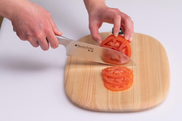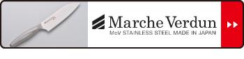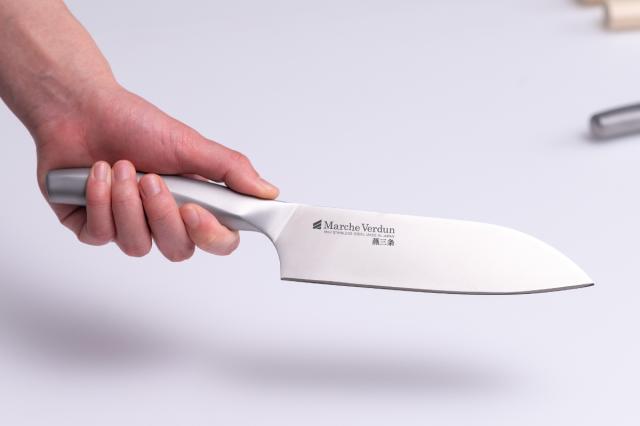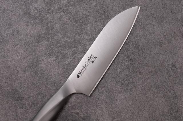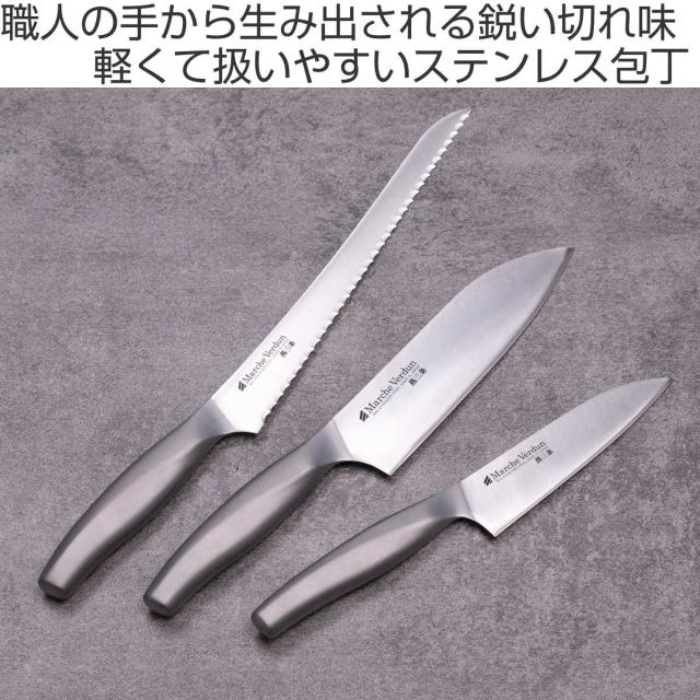 手研ぎ本刃付け、オールステンレス製のマルシェヴェルダンシリーズには、三徳包丁、ペティナイフ、パン切り包丁があります。シリーズで揃えてお使いいただくとキッチンに統一感がでます。