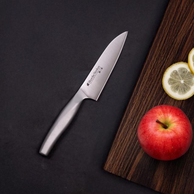 手研ぎ本刃付け、オールステンレス製のマルシェヴェルダンシリーズには、三徳包丁、ペティナイフ、パン切り包丁があります。シリーズで揃えてお使いいただくとキッチンに統一感がでます。
