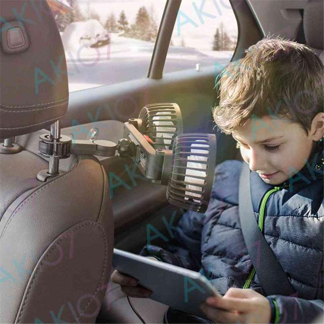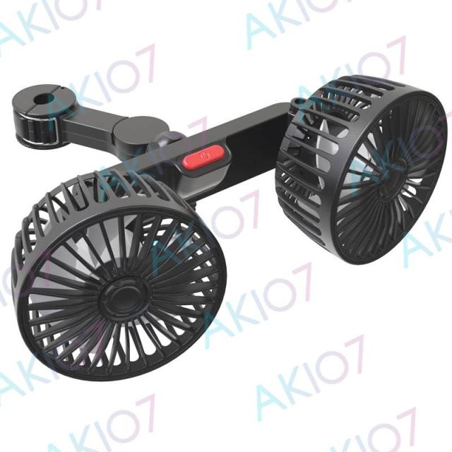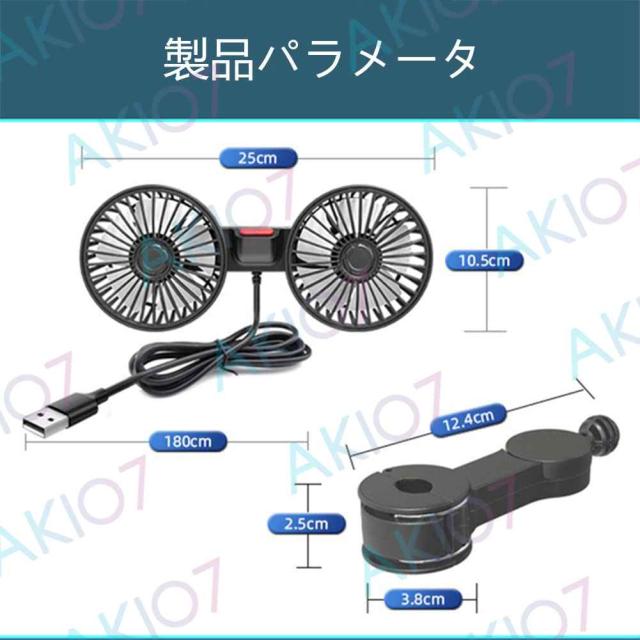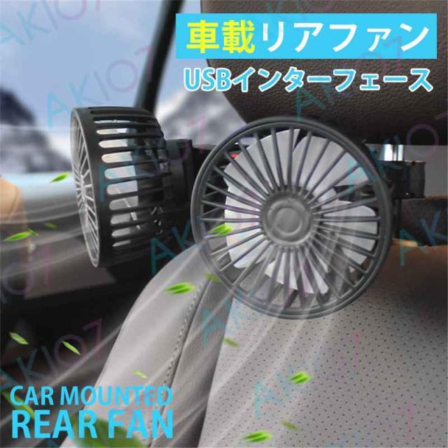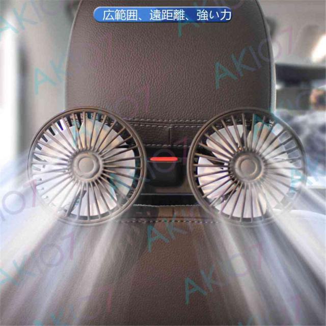 車用扇風機 車用双頭扇風機 リアファン 5枚羽根 強風量 角度調節可能 3段階風量調節 USBインターフェース 簡単取付 空気循環 熱中症対策