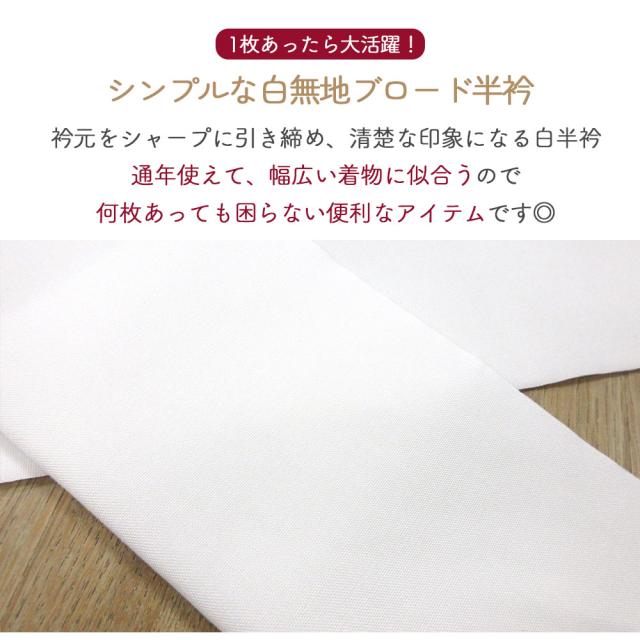 【4枚までメール便送料無料】ブロード 半衿 洗える 白 半襟 半えり 通年用 無地 ポリエステル100% 白 ホワイト 洗濯OK 着物 袷 単衣 襦袢 必需品 定番 春 秋 冬 半襟 洒落 フォーマル 振袖 訪問着 色無地 レディース 女性