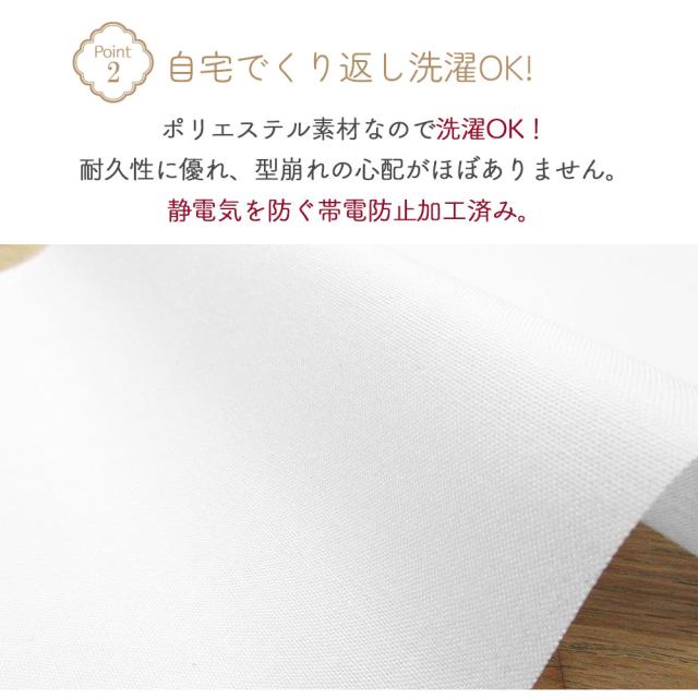 ポリエステル100%のため、シワになりにくく、洗濯をしても縮みません。