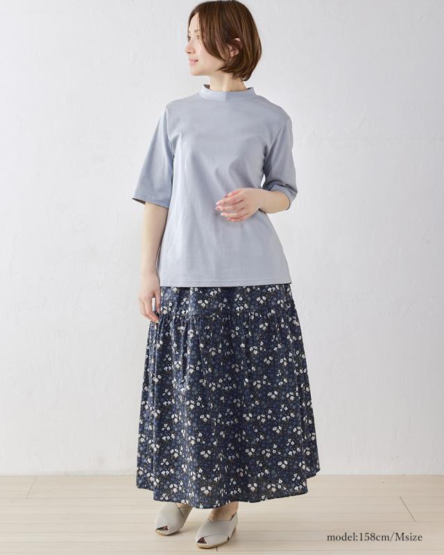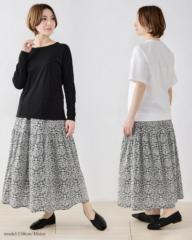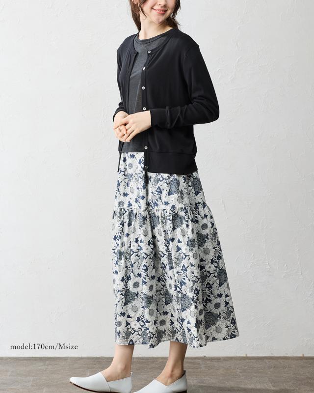 品よく華やぐ、リバティプリント生地を使用したロングスカート。