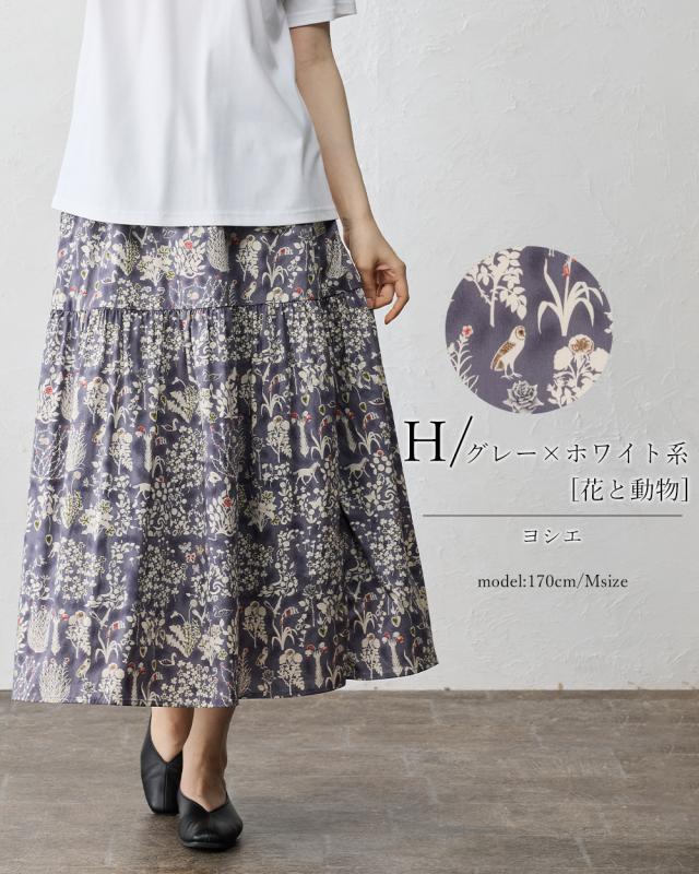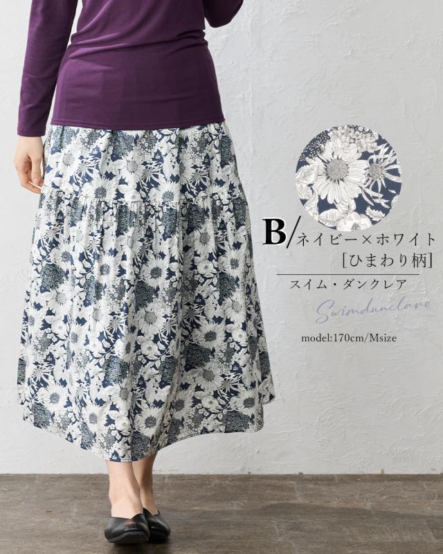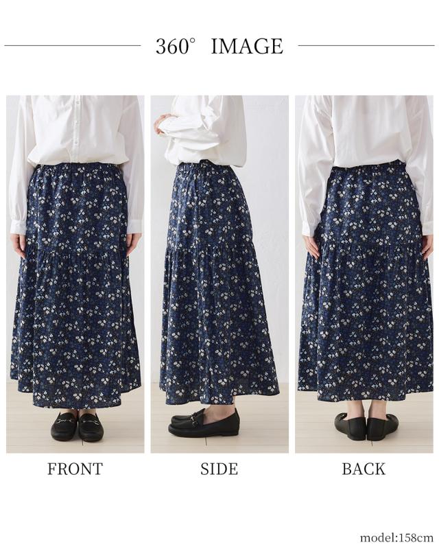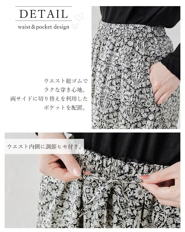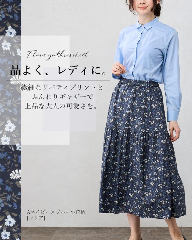 リバティ LIBERTY フレアスカート 日本製 花柄 フラワー 草花 ボタニカル プリント 綿100% コットン 綿 ギャザースカート ロングスカート Aラインスカート ミモレ丈 ロング丈 ファッション レディース お出かけ 春 冬 秋 ボトムス カジュアル リバティ生地 4130922