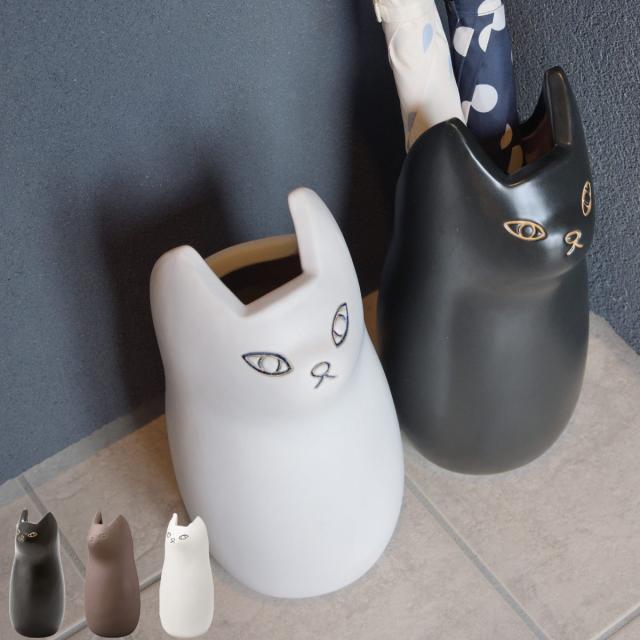 傘立て ネコ 45cm 陶器 ( 傘たて 猫 玄関収納 スリム アンブレラスタンド かわいい 猫グッズ 傘入れ 猫型 アニマル 錆びない 北欧 玄関 収納 )