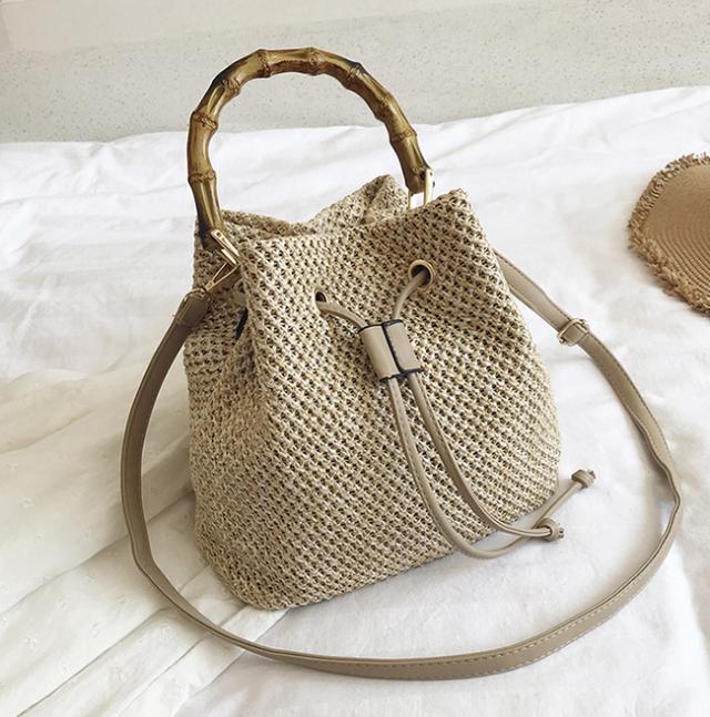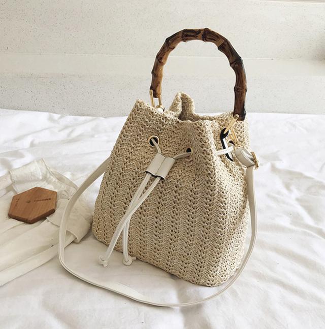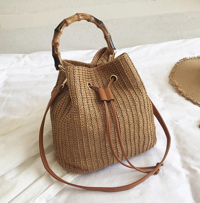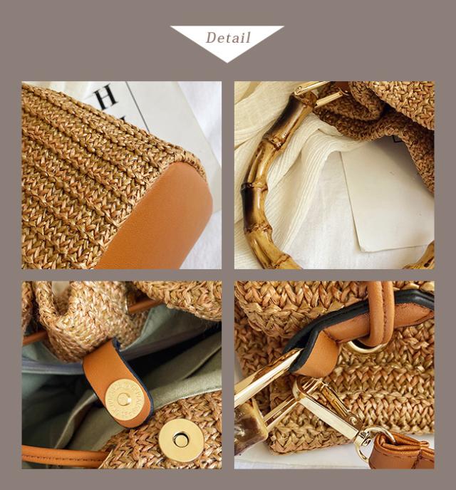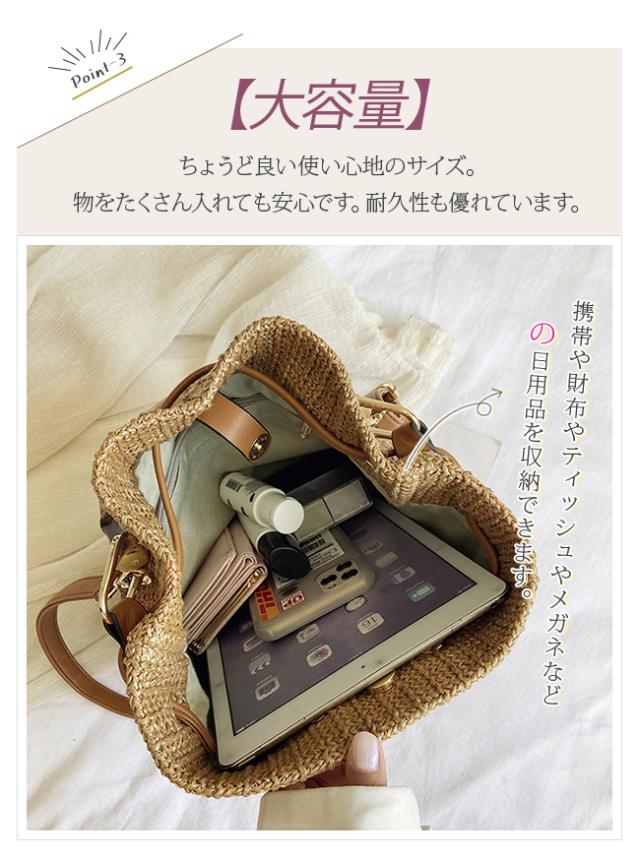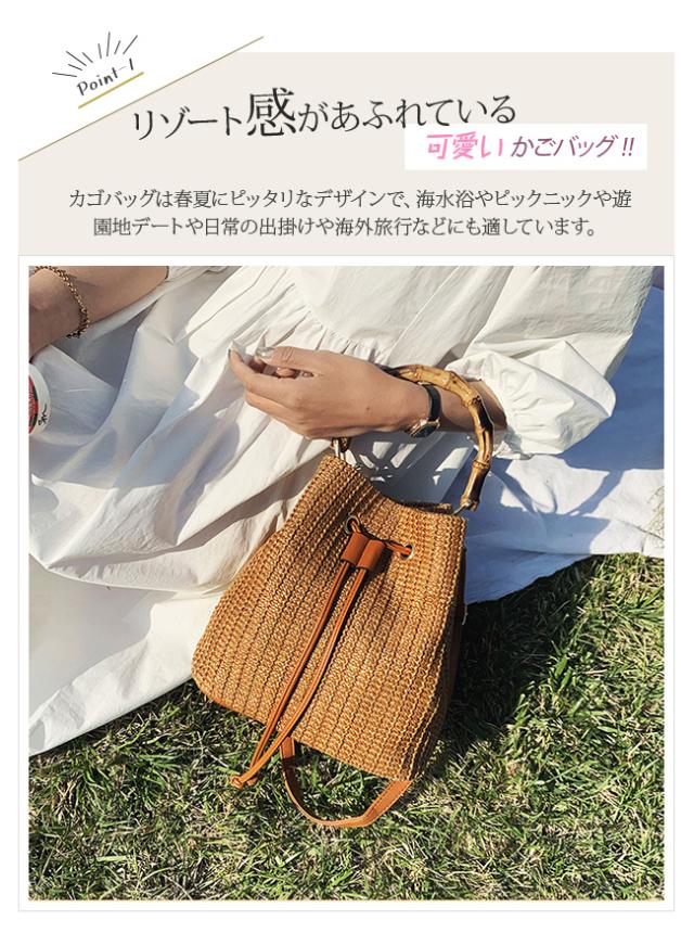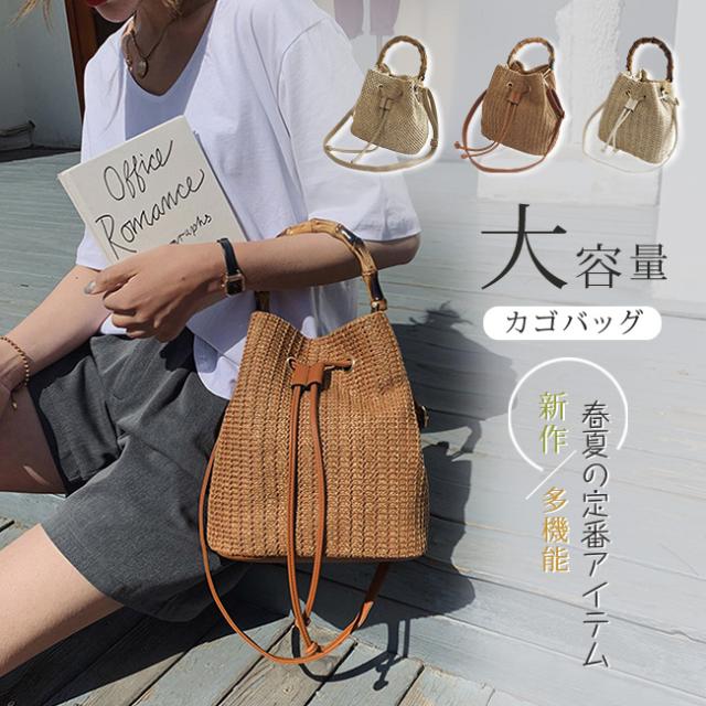 ショルダーかごバッグ 籐のわらハンドバッグ バケツ型 草編み トートバッグ 編みバッグ レディース かごバッグ ビーチバッグ 軽量 カジュアル おしゃれ かわいい 大容量 通勤 お出かけ 旅行