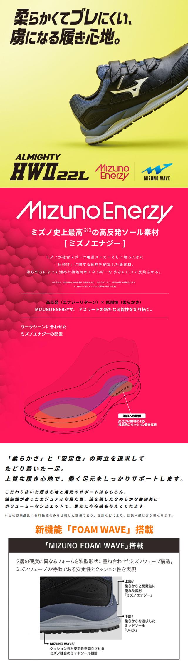 安全靴 ミズノ MIZUNO ALMIGHTY HW2 22L オールマイティ HW2 22L Ltd 新商品 マジックテープ JSAA規格 メンズ レディース 作業靴 限定 限定カラー マジック ベルト かっこいい おしゃれ 軽量 蒸れにくい 疲れにくい