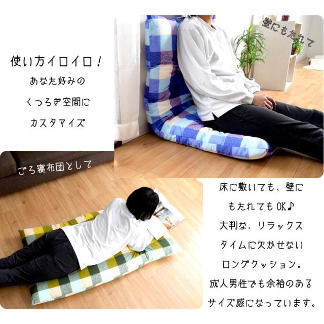 クッション 長座布団 座布団 おしゃれ ごろ寝 ロング ボリューム 約68×120cm ロングクッション シートクッション お昼寝 シンプル チェック柄