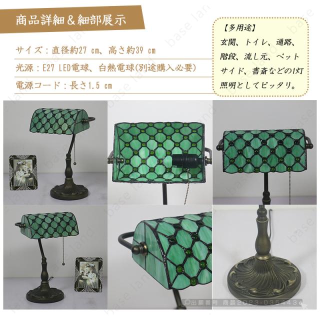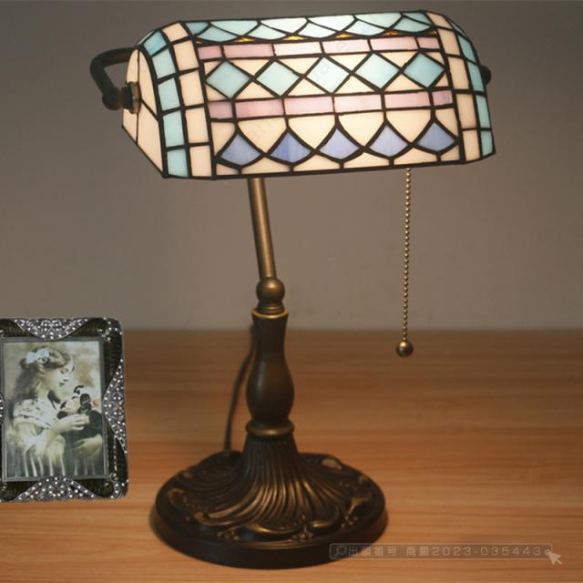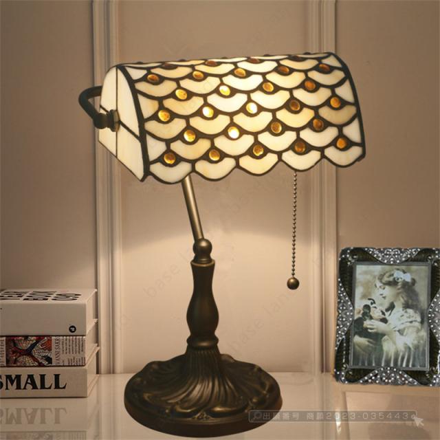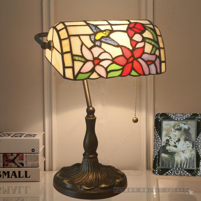 レトロな雰囲気が感じられるステンドグラス風シェードの テーブルランプ。