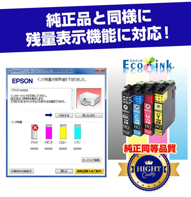 MED-4CL エプソン インク メダマヤキ 大容量 互換インクカートリッジ EPSONプリンター: EW-056A EW-456A MED-BK MED-C MED-M MED-Y med互換 メダマヤキ互換 ew-056a ew-456a【純正同等品質】
