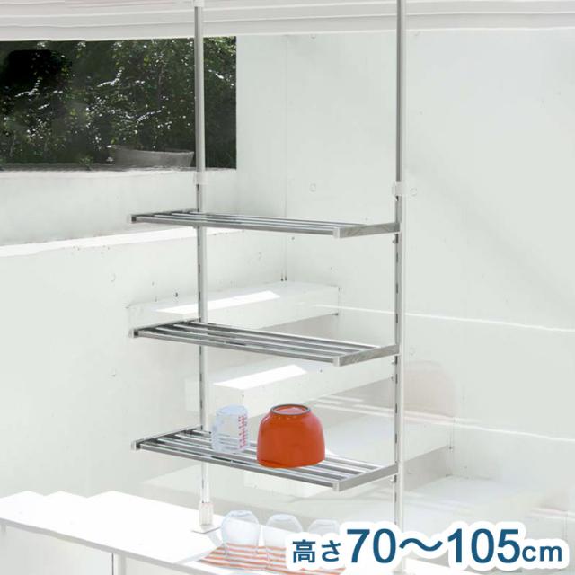 突っ張り棚 3段 水切り棚 水切りラック キッチンラック 突っ張りラック つっぱりラック キッチン収納 キッチンラック 壁面収納 シンク収納 シンプル(代引不可)【送料無料】