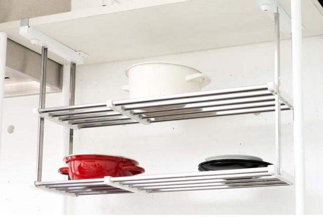 キッチンの吊戸下に設置できる、はさみタイプの水切り棚。