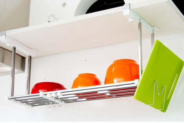 キッチンの吊戸下に設置できる、はさみタイプの水切り棚。