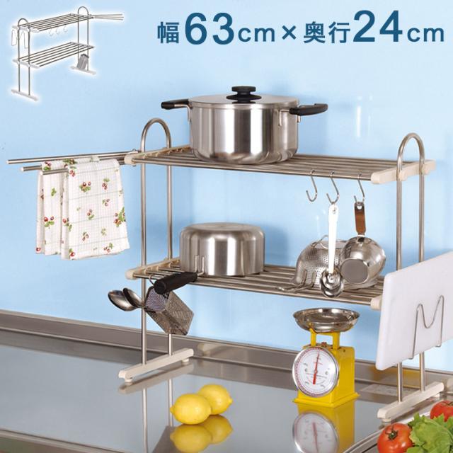 ふきん掛け(3本掛け)・フック3本・角ポケット・まな板受け付。