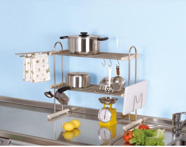 水切りラック 2段 水切り棚 ふきん掛け/フック/箸立て/まな板スタンド 付属 キッチンラック キッチン収納 キッチンラック シンク収納 シンプル(代引不可)【送料無料】