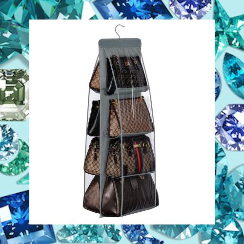 himsyuden 吊り下げ収納 バッグ収納ラック 4段式 カバン収納ラック 8個収納可能 両面収納 省スペース 防湿防カビ 壁掛け クローゼット収
