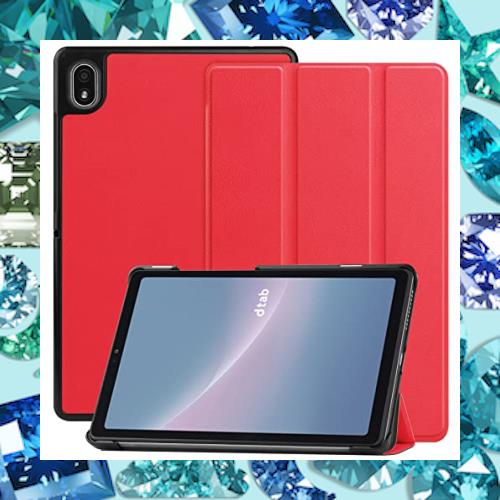 NTT Docomo dtab D-52C ケース [Gosento] 2023新型 軽量 薄型 三つ折スタンドケース PUレザー NTT Docomo dtab D-52C カバー [レッド]