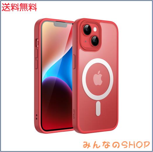 JEDirect iPhone 14 6.1インチ用 マグネット ケース MagSafeに対応 半透明のマット背面 薄型 耐衝撃 カバー (レッド)