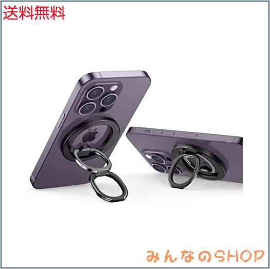 ESR HaloLock スマホリングスタンド MagSafe対応 スマホリングホルダー 指リング スマホグリップ 角度調節可能なキックスタンド 折り畳み iPhone 14/13/12シリーズ専用 ブラック