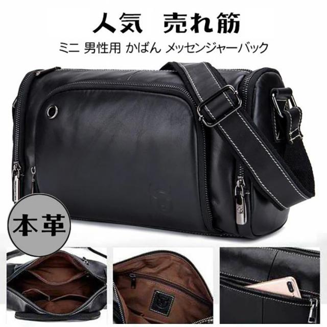 【10%offクーポン配布中】ショルダーバッグ メンズ レザー 斜め掛け 肩掛け 大容量 本革 牛革 皮革 ミニ 男性用 かばん 横型 メッセンジャーバック カジュアル 小さめ 斜めがけ 大容量 ミニバッグ かっこいい (ブラック)