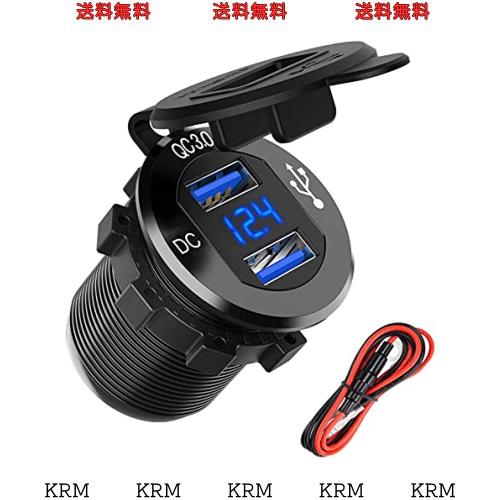 バイク用 チャージャー USB充電器 防水 QC 3.0 カーパワーソケット デュアル 2 ポート 36W 急速充電LED電圧計 12V / 24V 車/バイク/オー